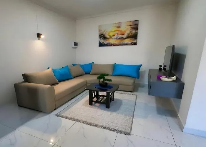 Appartement Coastal Blue 1 assure votre confort en fournissant une cuisine équipée avec une bouilloire électrique, un réfrigérateur et de la vaisselle. Une piscine privée est également disponible pour vous permettre de vous détendre.
